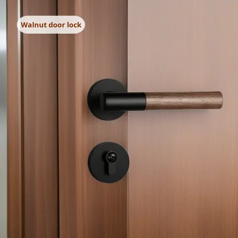 Cerradura de puerta de grano de madera de nogal de estilo moderno, manija de puerta magnética silenciosa para dormitorio interior de madera maciza, nuevo estilo chino